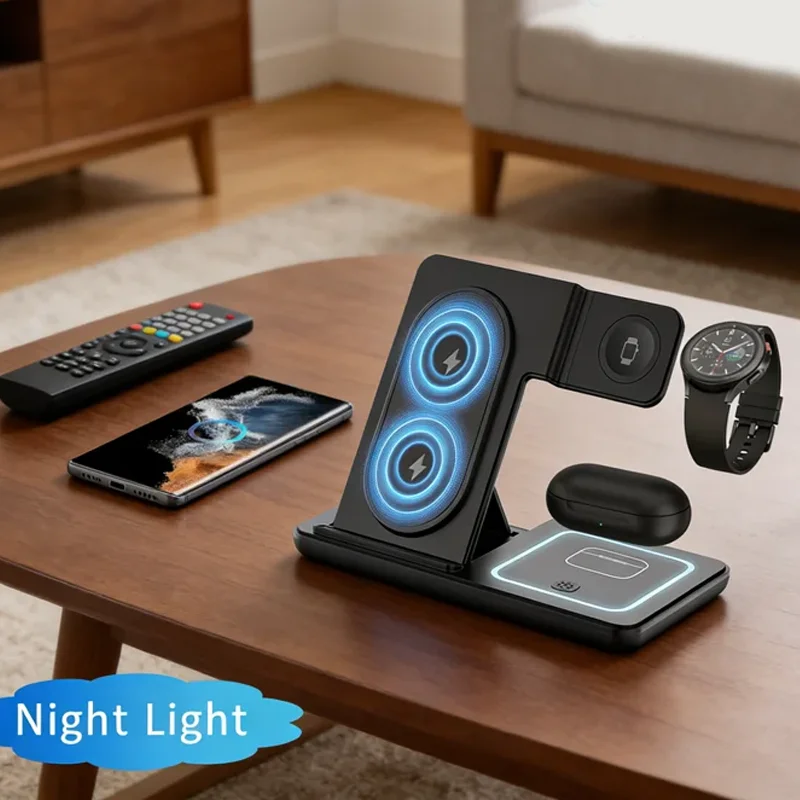 3 in 1 Foldable Wireless Charger Desk Stand For Samsung S24 S23 Galaxy Watch 2-8 Active 1 2 Buds Pro LED Fast Charging Station $14.43