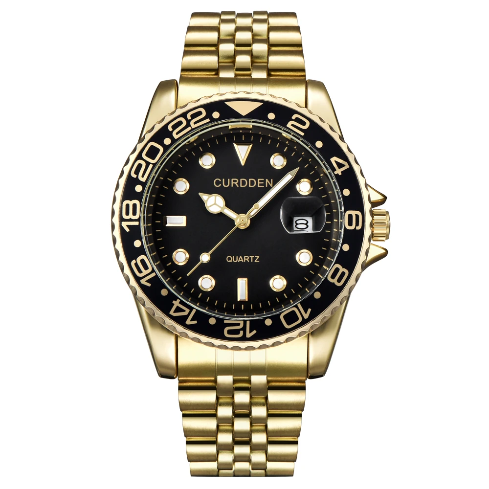 Original Design CURDDEN Brand Watches For Men Fashion Full Stainless Steel Golden Date Quartz Watch 시계 Erkek Kol Satleri Relogio $11.44