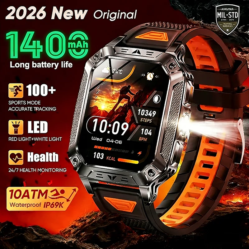 LIGE New 2.01" AMOLED 1400mAh Big Battery Smart Watch Men Outdoor LED Flashlight Waterproof Bluetooth Call Sports Smartwatch Man $26.14
