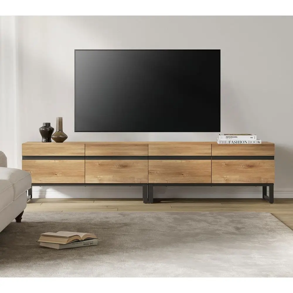 75 Inch Oak TV Stand with Storage Cabinet and Metal Legs for Living Room or Bedroom Entertainment $427.97