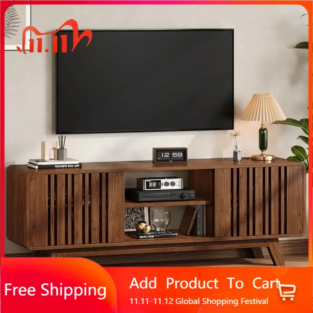 63-inch tv stand for tvs up to 75 inch, mid-century modern television stand with power outlet, entertainment center with sliding $152.69