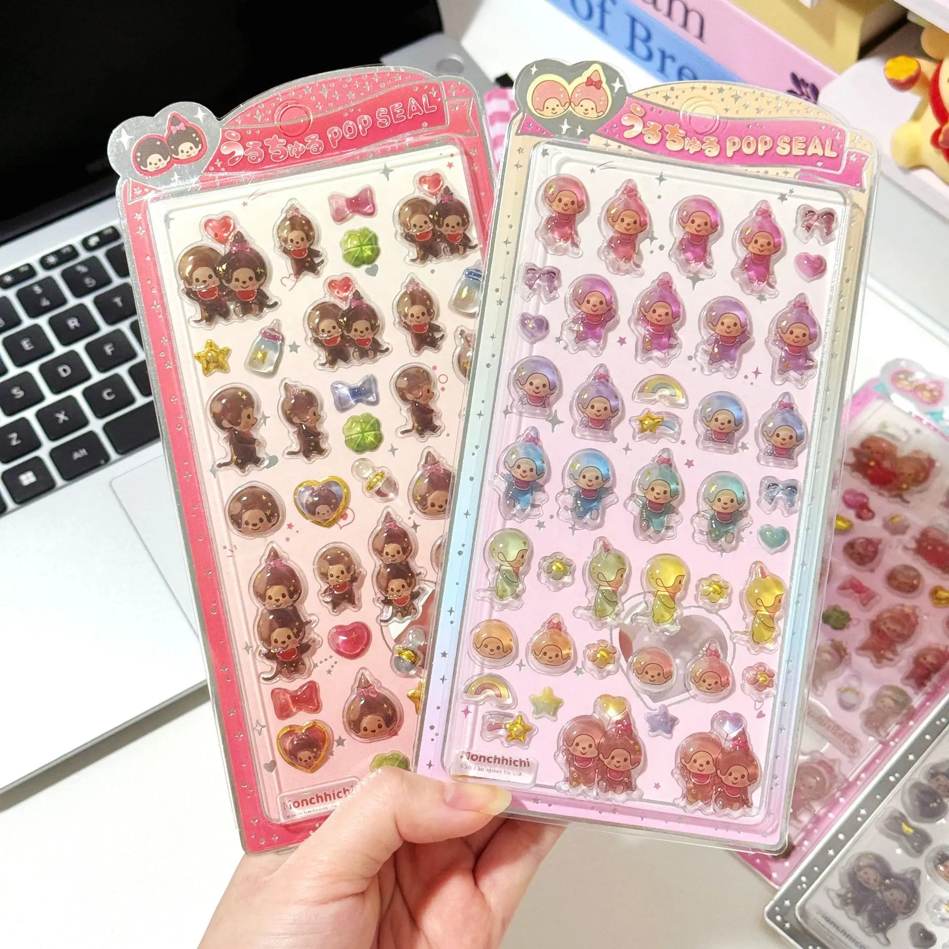 Cute Monchhichi Crystal Sticker New Kids Kawaii Jelly Sticker Party Envelope Sealing Label Decoration Children Classic Toys Gift $2.88