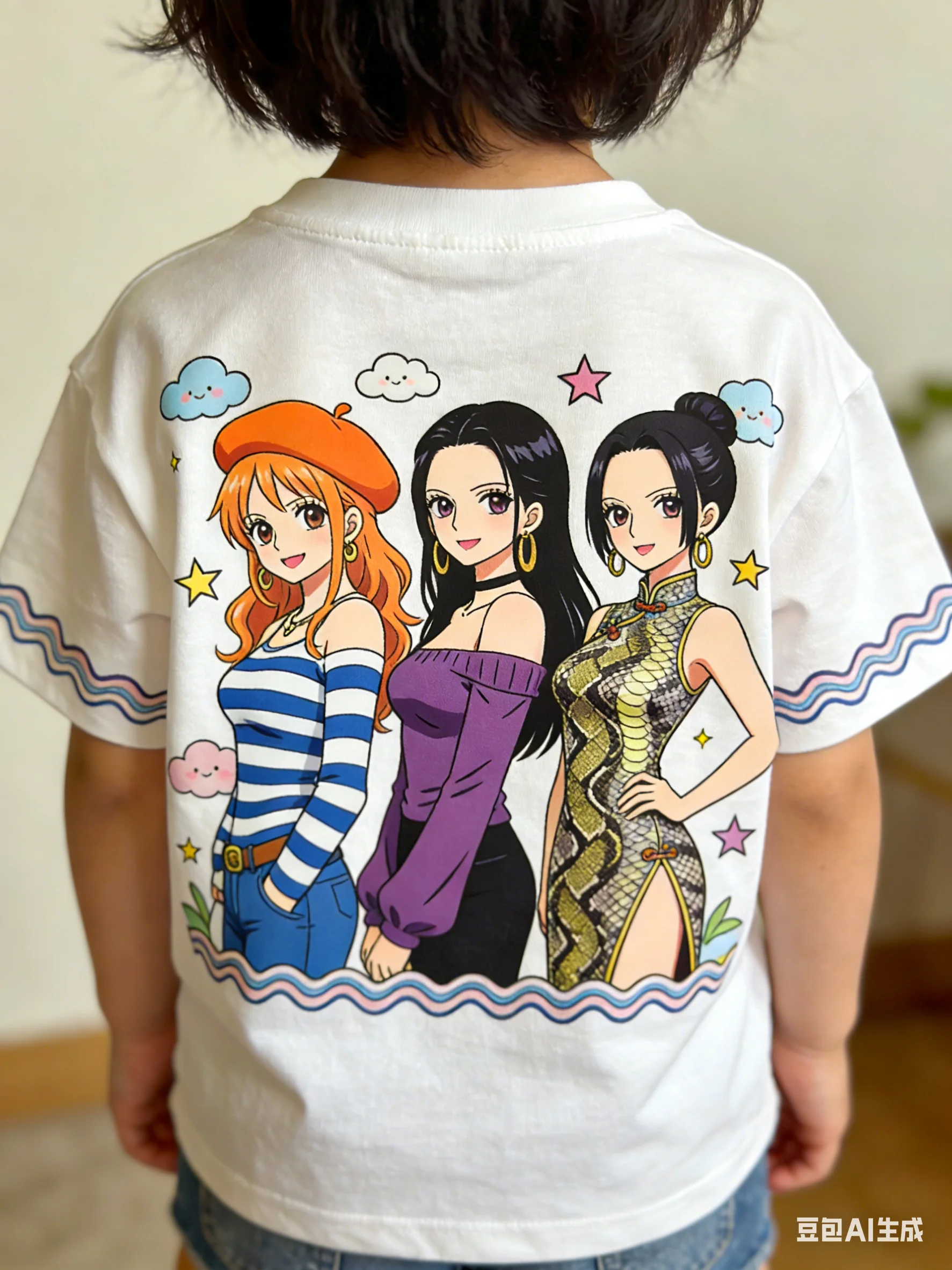 One Piece Trio Three Beauties Print Kids T-Shirt Unique Anime Design Breathable Comfortable Unisex Perfect Festival Gift $9.79