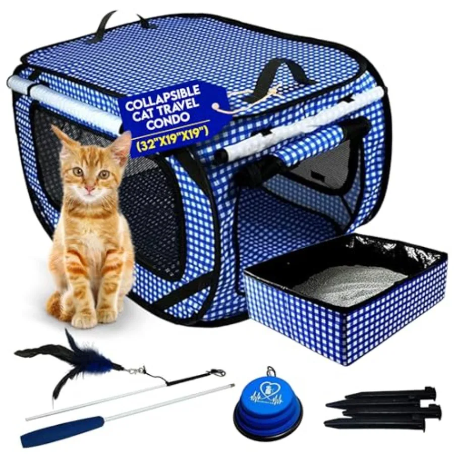 Extra Large Cat Carrier for Travel - Foldable and Portable Collapsible Kennel with Litter Box Feather Toy and Water/Food Bowl - $46.16