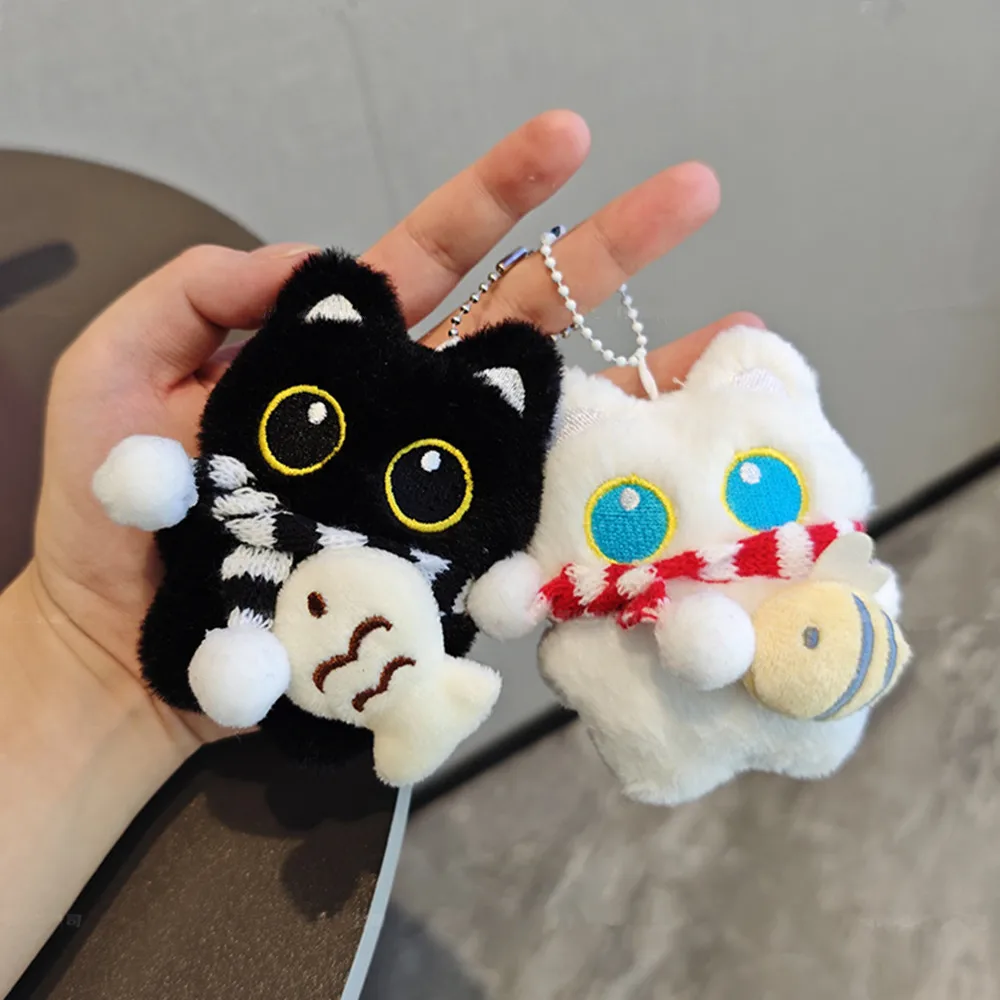 1Pcs Cool Plush Black White Cat Doll Toy Keychain Bag Pendant Charms Car Keyring Accessories For Couples Kawaii Gift $1.90