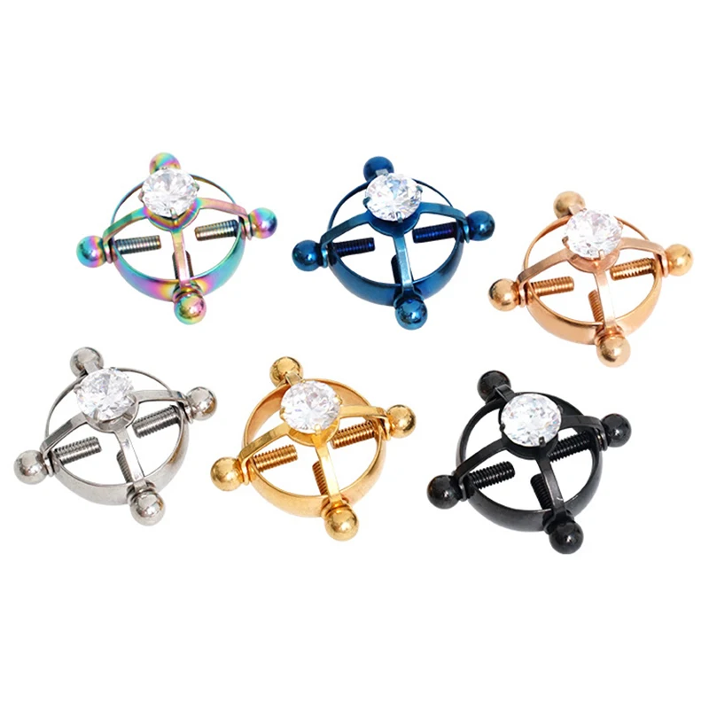 1Pc Fashion Crystal Stainless Steel Fake Nipple Rings Screw Back Non-Piercing Clip Nipple Piercing Jewelry for Women $14.37