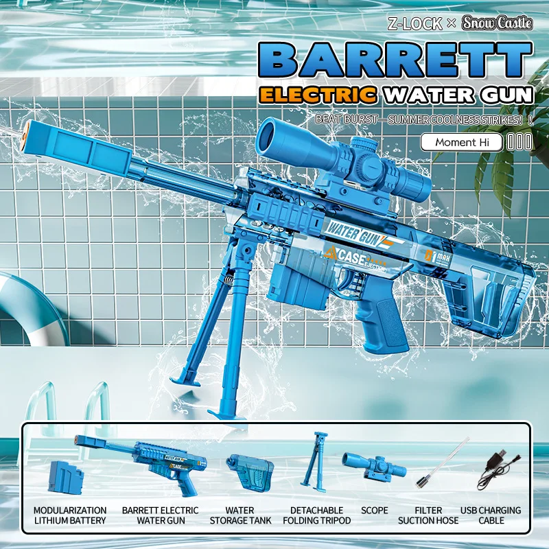 Electric Water Gun Toy Barrett Model with Bracket Automatic Return Water Pistol Squirt Toys Summer Outdoor Game Toys for Boys $37.00