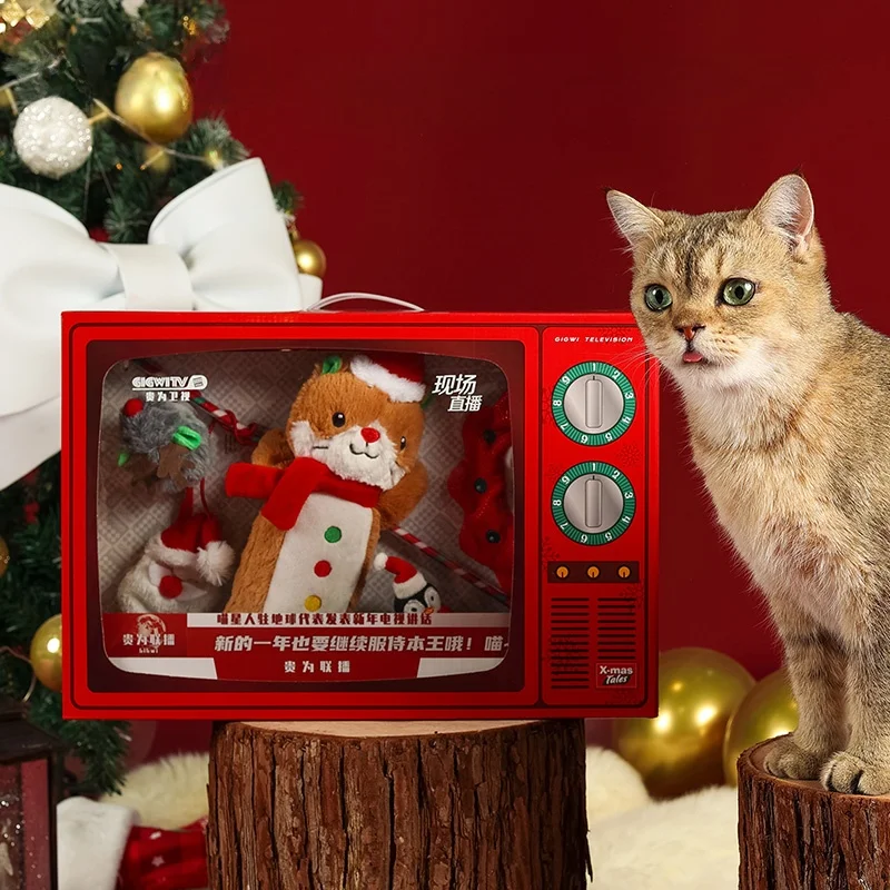 GiGwi Big Pine Pet Cisas New Year Gift Box Toy Sound ing Noise er nip Sti Kittens Playtime Scarf $15.16