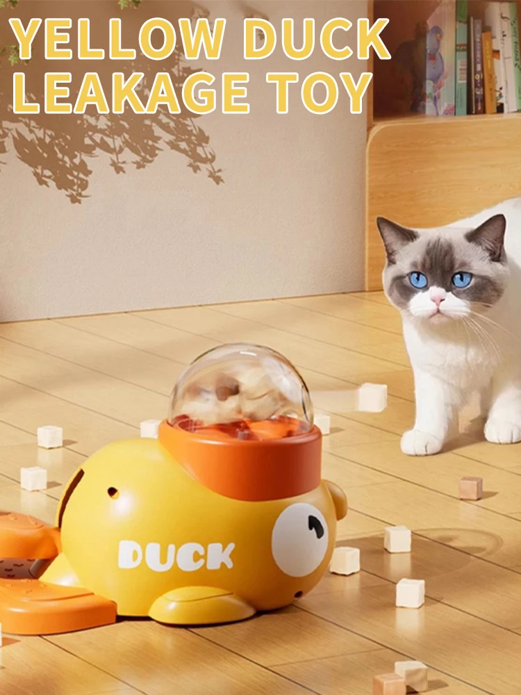 2-in-1 Interactive Dog and Cat Toy Automatic Food Treat Dispenser Cartoon Duck Design Slow Feeder Pet Snack Feeder for Training $12.21