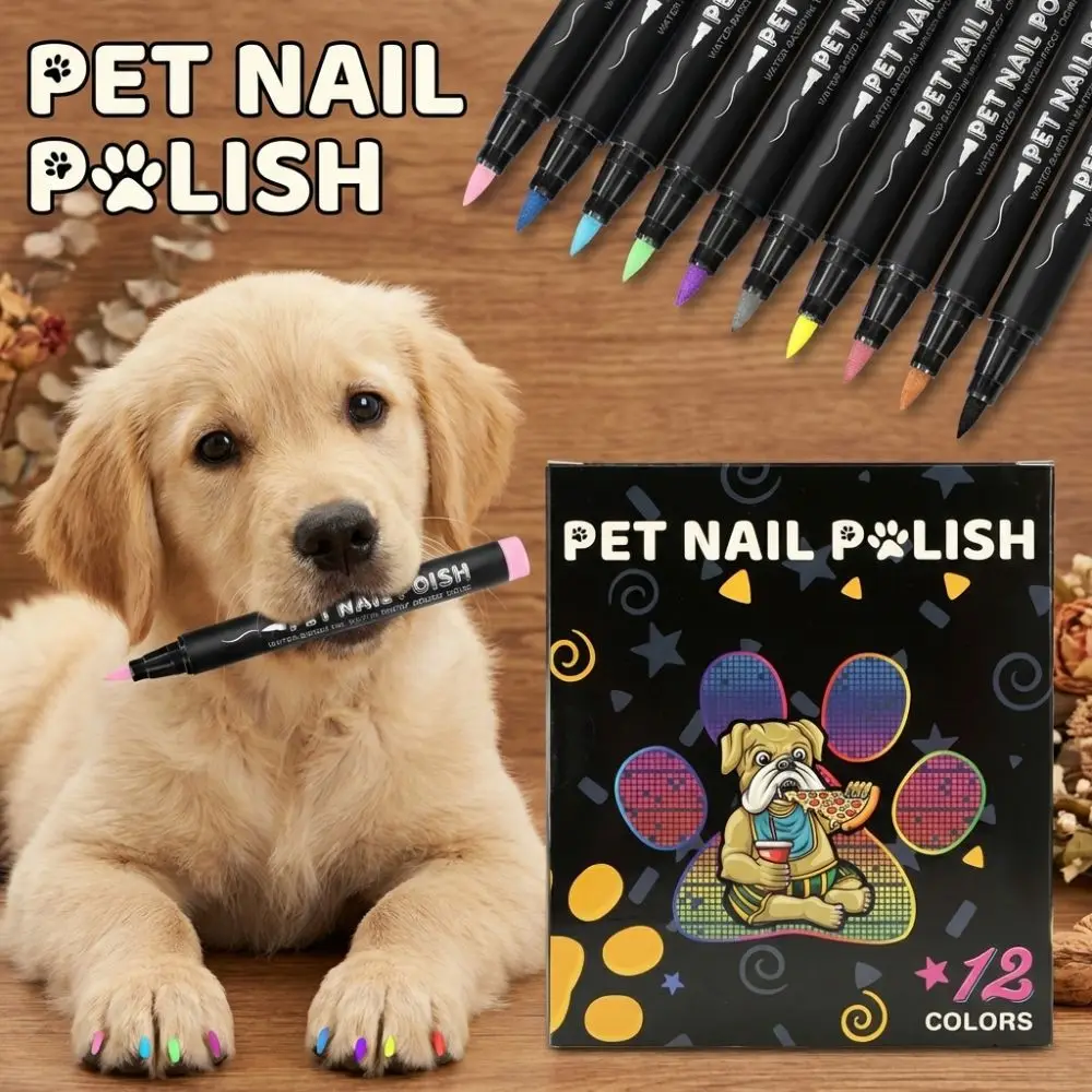 Quick Dry Dog Nail Polish Pens Safe Odorless Non-Toxic Dog Nail Polish Set Water-Based 12 Colors Pet Nail Accessories Set $9.85