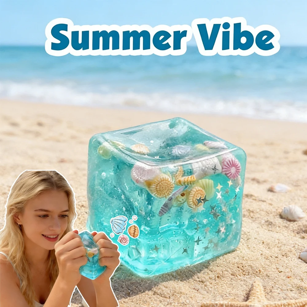 Gleaming Taba Soft Gel Stress Ball Cube - Ocean Sensory Fidget Toy, Slow Rising Squishy for Kids & Adults, Squeeze Relax Gift $7.07