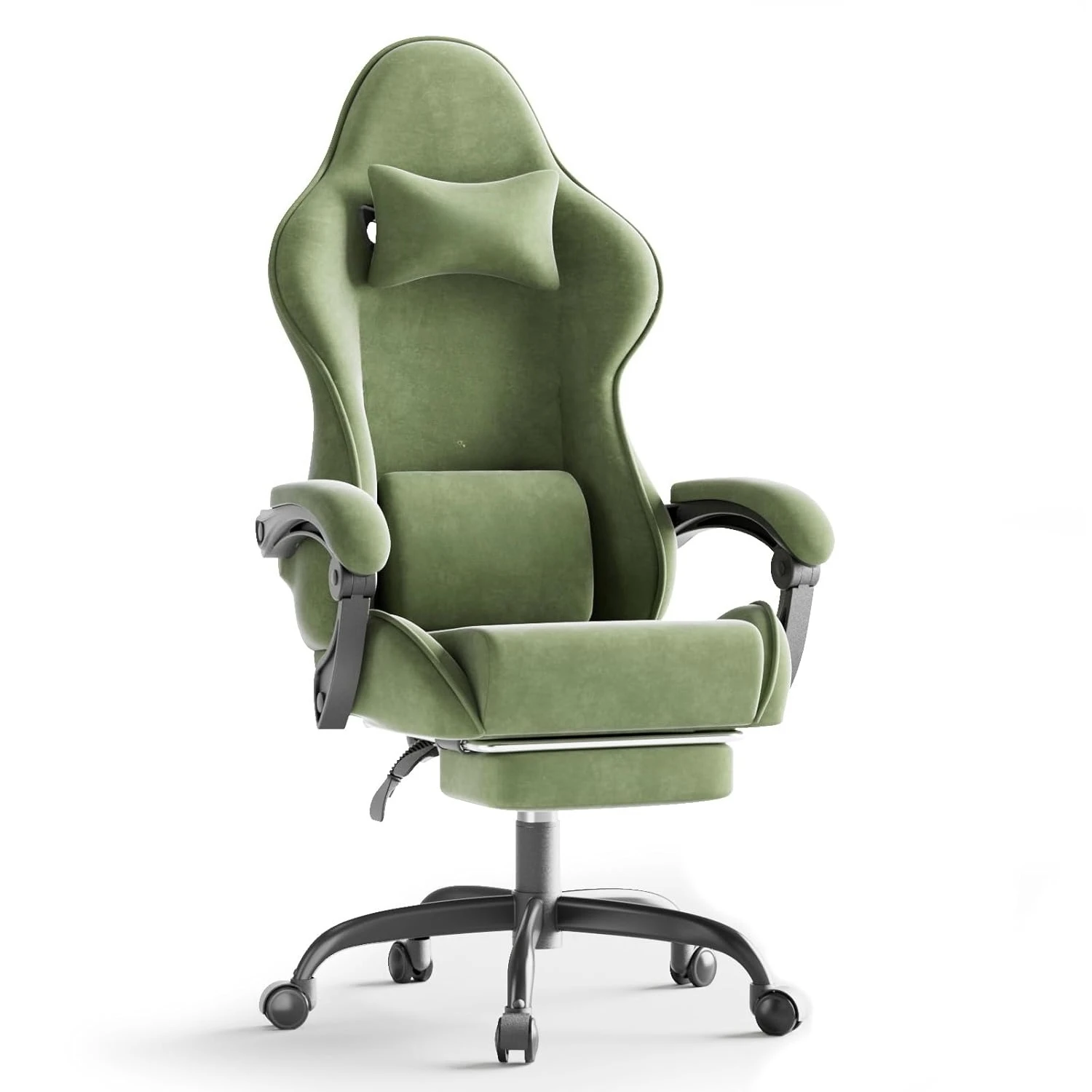 Velvet Fabric Gaming Chair, High Back Ergonomic Gamer Chair for Adult, Comfortable Video Game Chair with Footrest, Customized $65.10